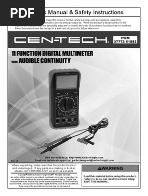 Cen Tech 61593 11 Function Digital Multimeter Owner S Manual Manualzz